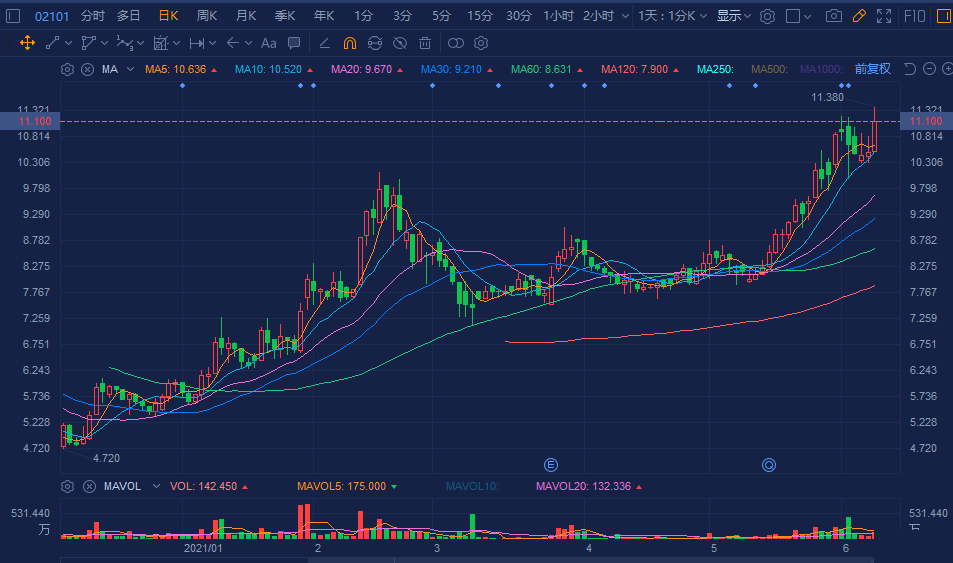 福禄控股(2101.HK)盘中拉升大涨8%,高见11.38港元再度刷新历史高价,总市值达45亿港元。