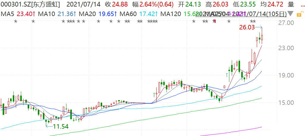 延续近期强势,东方盛虹今日继续走高,盘中一度拉升涨超7%报26.03元,市值1258亿元。