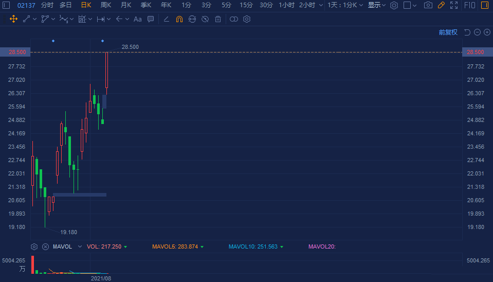 腾盛博药(02137.HK)大幅拉升涨超15%,报28.55港元创历史新高价,总市值站上200亿港元大关。