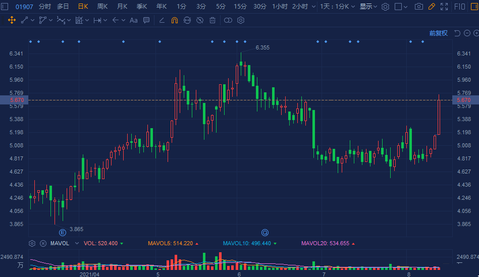 中国旭阳集团(1907.HK)大幅拉升涨超10%,报5.64港元,总市值超250亿港元。
