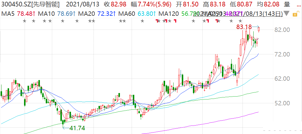 先导智能(300450.SZ)盘初拉升涨8%至83.18元,创历史新高价,市值1300亿元。