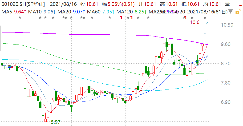 ST华钰(601020.SH)今日再度涨停报10.61元,为连续第四日涨停,股价创今年3月以来新高,市值59亿元。