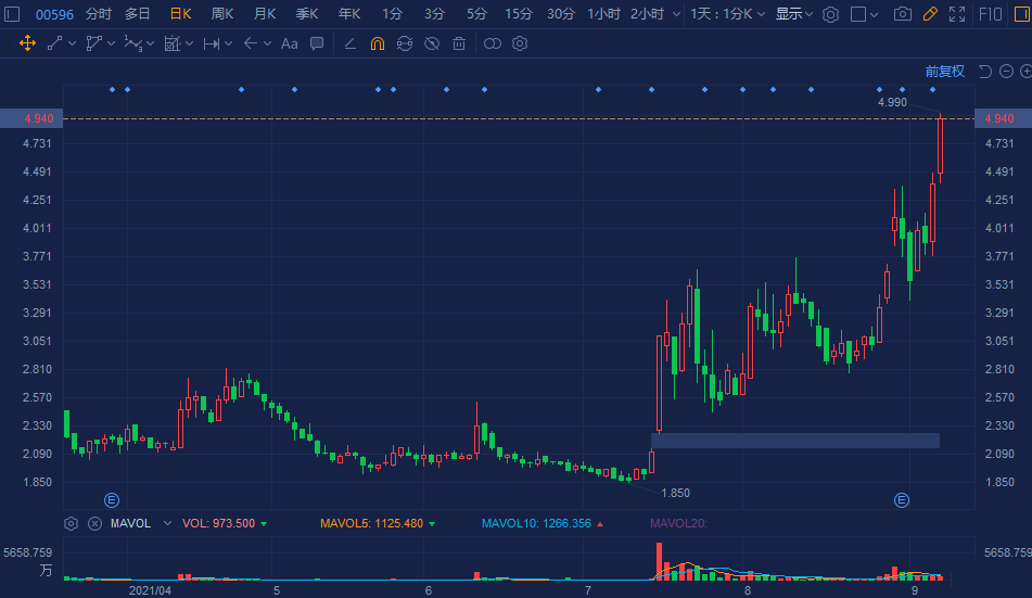 浪潮国际(0596.HK)延续强势行情,再度大涨超12%,月内累计升幅达30%。现报4.94港元创逾6个月新高价,总市值达56亿港元。