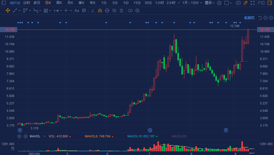 京东方精电(0710.HK)快速拉升涨超11%,报12.18港元突破近期阶段高价,创2000年7月以来新高价,总市值达90亿港元。