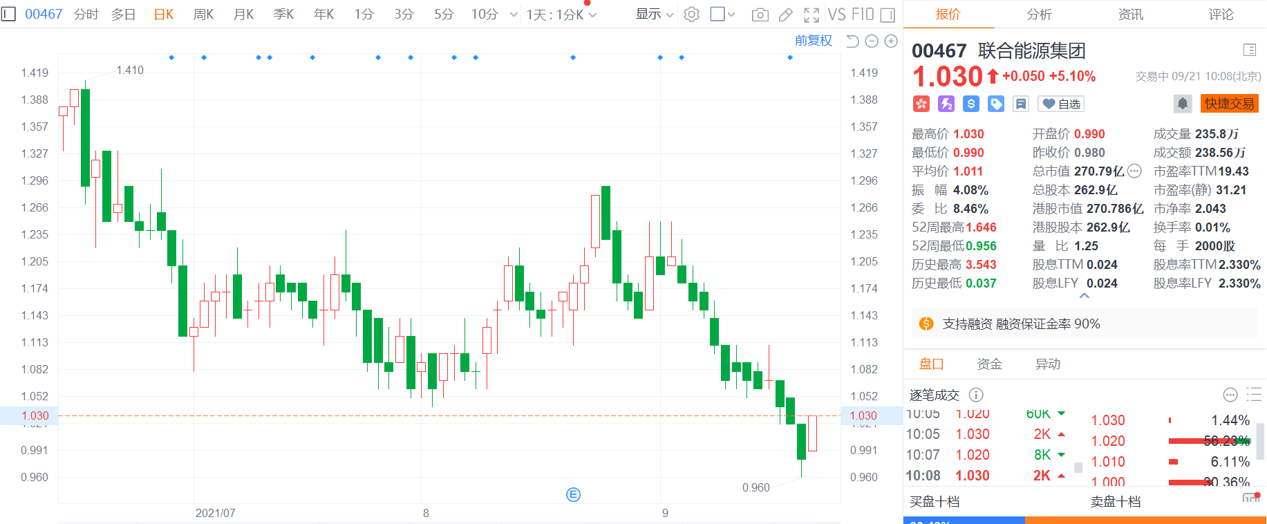 联合能源集团(0467.HK)涨逾5%,报1.03港元,总市值271亿港元。
