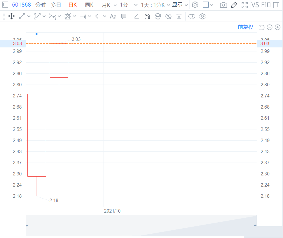 中国能建(601868.SH)上市第二日涨停,报3.03元,总市值1263亿元。