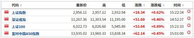 上证综指涨0.62%,收于2956.11点;