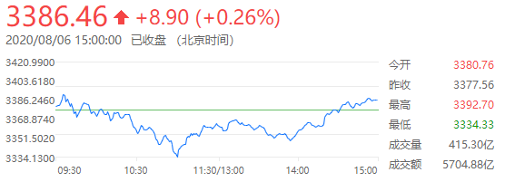 8月6日,股指全天以震荡为主,大小指数分化,其中,前期高位疫苗股全线重挫,白酒、猪肉等板块跌幅居前。截至收盘,沪指涨0.26%,报收3386点。
