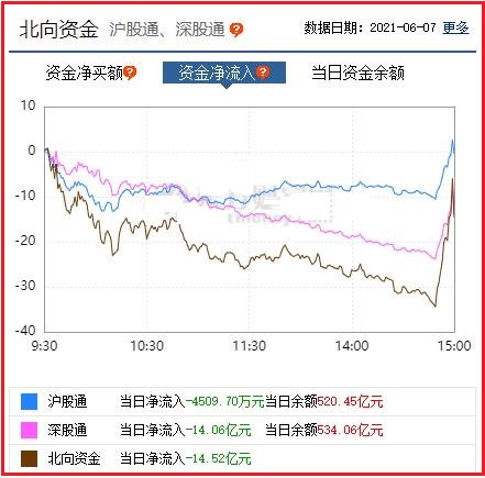 截至收盘: 北向资金净流出14.52亿元,其中沪股通资金净流出0.45亿元,深股通资金净流出14.06亿元。