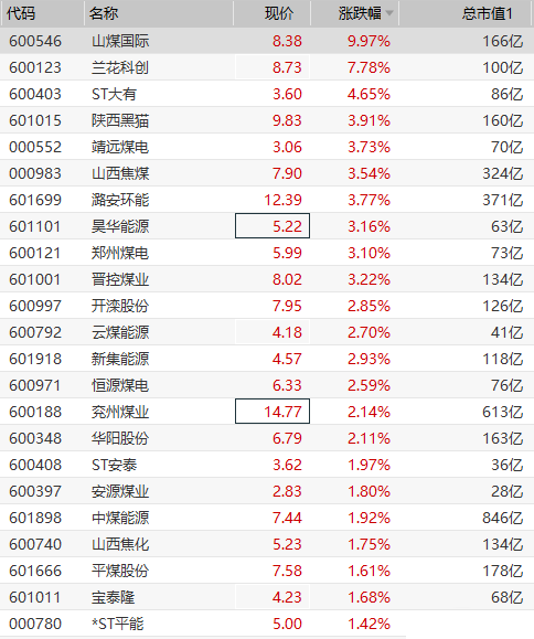 煤炭板块拉升走强,山煤国际拉升封板,兰花科创涨超7%,陕西黑猫、山西焦煤、潞安环能、昊华能源等跟涨。国家矿山安监局近日下发紧急通知,调派百名执法人员对山西、黑龙江、河南、贵州、云南、陕西、内蒙古、新疆及新疆生产建设兵团等9个重点产煤省开展异地联合监察执法。要全面排查防突体制机制,全面排查瓦斯参数,强化钻孔涉及及施工管理,确保瓦斯抽采达标,严格效果检验;此外,要严厉打击造假行为,建立通风瓦斯日分析制度,建立月度防突预测图制度。