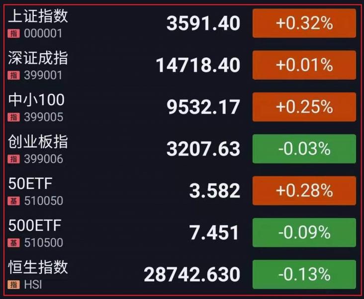 1.A股三大指数全线低开,鸿蒙概念股延续强势。盘中指数走势分化,旅游、军工、半导体短线走高,钛、煤炭、钢铁等周期股再掀涨停潮,采掘服务、云游戏概念表现活跃;农业、医药电商、汽车股集体回调。午后,指数横盘震荡,磷化工、氟化工、基础化学等化工股持续升温,有色板块表现活跃,林业种植、上海本地股下挫走弱。总体来看,市场情绪有所修复,两市逾2200个股上涨。截至收盘,上证指数涨0.32%,报3591.40点,深证成指涨0.01%,报14718.40点,创业板指跌0.03%,报3207.63点;