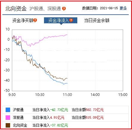 截至午间收盘: 北向资金净流出37.82亿元,其中沪股通资金净流出42.73亿元,深股通资金净流入4.91亿元。