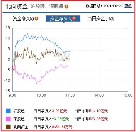 截至午间收盘: 北向资金净流入0.87亿元,其中沪股通资金净流入3.90亿元,深股通资金净流出3.03亿元。