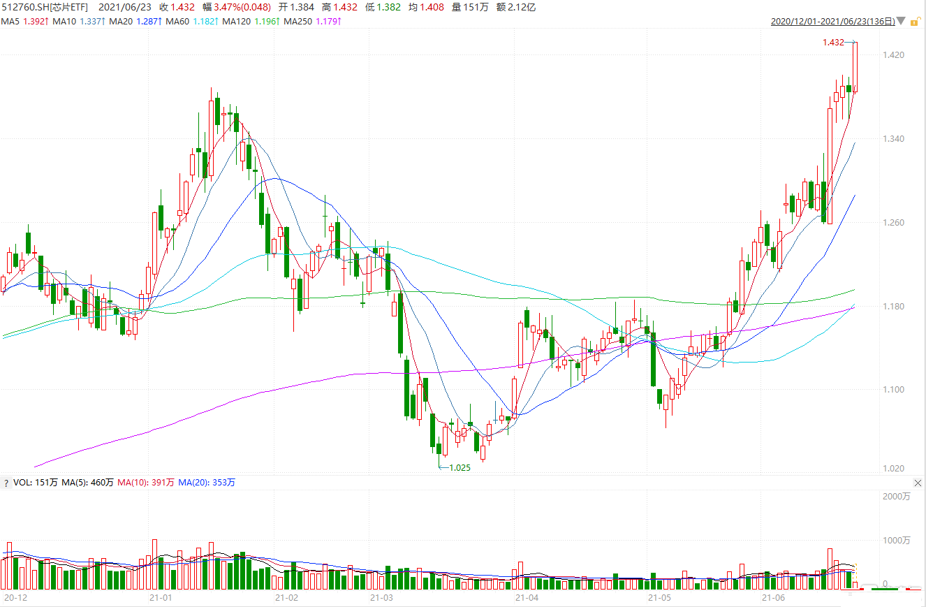 芯片板块继续走强,国科微大涨18%,全志科技涨超11%,富瀚微涨超9%,士兰微涨超7%,南大光电、赛微电子等多股上涨;芯片ETF(512760)现涨超3%,成交额超2亿元。芯片短缺叠加需求持续爆发,芯片设备供应“告急”,供需失衡的状况将延续到2022年,结构性的短缺可能持续存在。美国交易经纪商Susquehanna Financial Group的数据显示,5月芯片交货时间达到18周,创有追踪数据以来(2017年)的最长期限。根据其研究,5月芯片交货时间(即订购半导体和交货之间的时间差),相比此前一个月增加了7天,达到18周,表明芯片制造商难以满足需求的现状正进一步恶化。