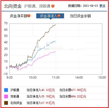 截至午间收盘: 北向资金净流入67.91亿元,其中沪股通资金净流入42.12亿元,深股通资金净流入26.78亿元。