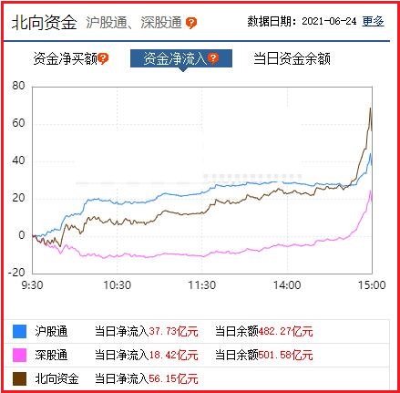 截至收盘: 北向资金净流入56.15亿元,其中沪股通资金净流入37.73亿元,深股通资金净流入18.42亿元。