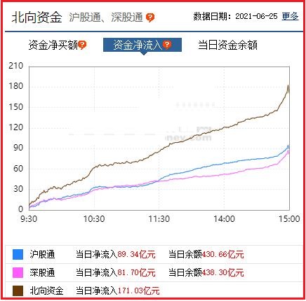 截至收盘: 北向资金净流入171.03亿元,其中沪股通资金净流入89.34亿元,深股通资金净流入81.70亿元。