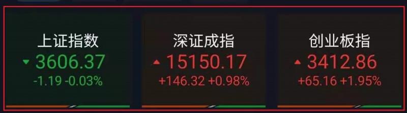 盘面上,猪肉、养殖业、中药涨幅前列,煤炭概念、银行、证券等跌幅居前,截至收盘,沪指跌0.03%,报收3606点;深成指涨0.98%,报收14943点;创业板指涨1.95%,报收3412点。