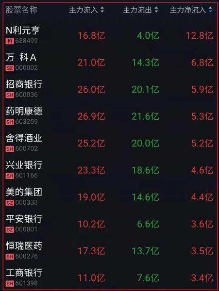 资金净流入十大人气热股: