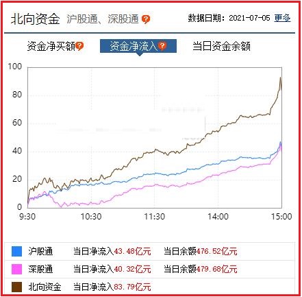 截至收盘: 北向资金净流入83.79亿元,其中沪股通资金净流入43.48亿元,深股通资金净流入40.32亿元。