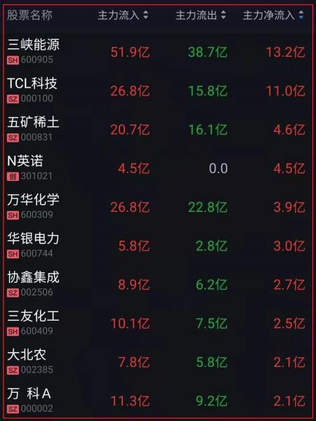 资金净流入十大人气热股:
