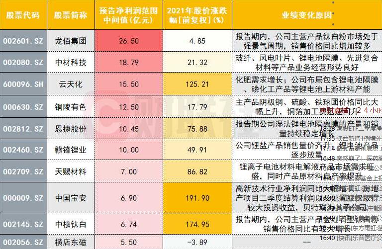 近期资本市场锂电产业链迎来大爆发,本周内,新能源产业链与资源股持续大涨,行情还发散至锂电各细分赛道。时值中报季,截至7月9日收盘,200余只锂电池产业链相关个股中,已有51只发布了中期业绩预告,财联社对以上个股交出的中报“成绩单”进行盘点。