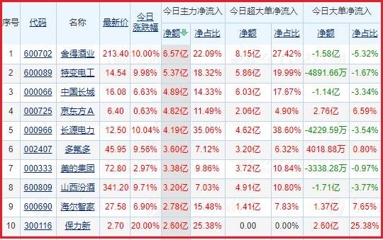 今日沪深两市主力资金净流入排名前5的个股分别为:舍得酒业、特变电工、中国长城、京东方A、长源电力;主力资金净流出排名前5的个股分别为:士兰微、卓胜微、立讯精密、长电科技、隆基股份。