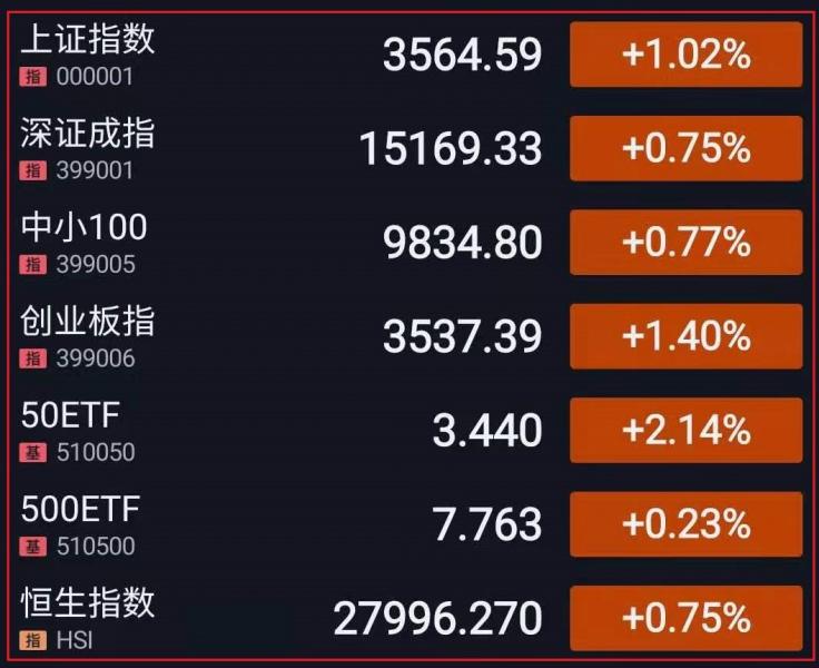 1.三大指数低开后冲高回落,深成指、创指先后跌逾1%,临近尾盘,银行板块走强拉动沪指翻红,黄白线分化明显,大盘股表现强势,北向资金持续流入,两市成交额持续放大。板块方面,保险、证券、银行等大金融板块走强,白酒概念略有回暖。午后三大指数走强,集体翻红后持续拉升,创指、沪指先后涨逾1%,上证50指数(3411.2888 71.91 2.15%)(3411.2888, 71.91, 2.15%)涨逾2%,北向资金大举入市抢筹,临近尾盘累计净流入达150亿元,主要流入银行、白酒等权重板块。板块方面,大金融板块全线反弹,钢铁、石油、有色等周期股走强。总体而言,市场情绪较早盘有所回暖,但板块、个股依旧呈现普跌格局,赚钱效应一般。截至收盘,上证指数涨1.02%,报3564.59点,深证成指涨0.75%,报15169.33点,创业板指涨1.40%,报3537.39点;