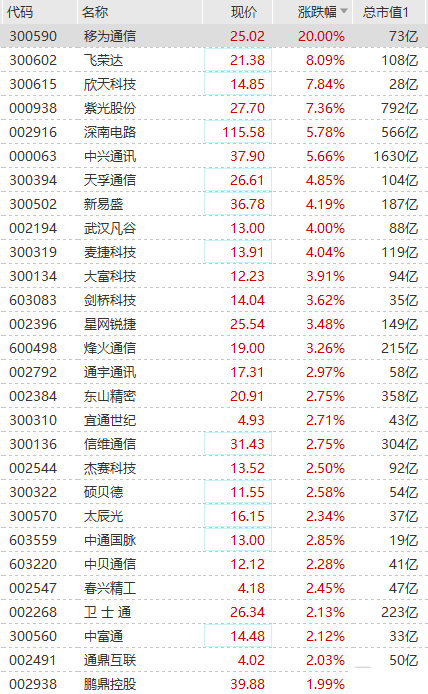 5G板块午前异动拉升,移为通信直线封涨停,飞荣达涨超8%,紫光股份、欣天科技涨超7%,深南电路、中兴通讯涨超5%,天孚通信、武汉凡谷等纷纷跟涨。