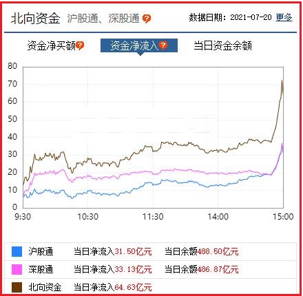 截至收盘: 北向资金净流入64.63亿元,其中沪股通资金净流入31.50亿元,深股通资金净流入33.13亿元。