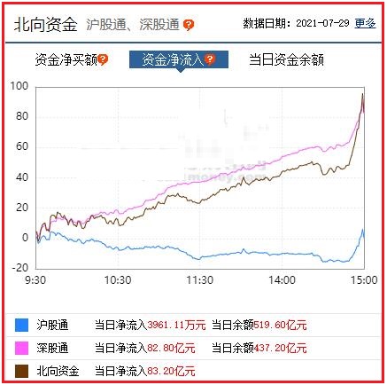 截至收盘: 北向资金净流入83.20亿元,其中沪股通资金净流入0.4亿元,深股通资金净流入82.80亿元。