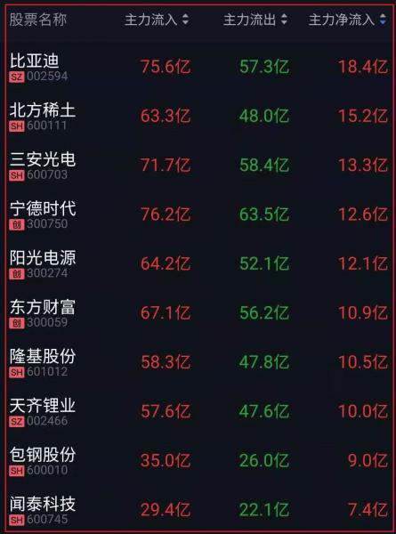 资金净流入十大人气热股: