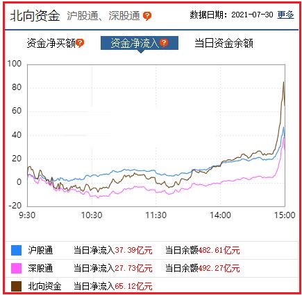 截至收盘: 北向资金净流入65.12亿元,其中沪股通资金净流入37.39亿元,深股通资金净流入27.73亿元。