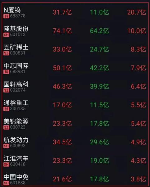 资金净流入十大人气热股: