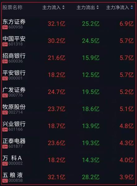 资金净流入十大人气热股: