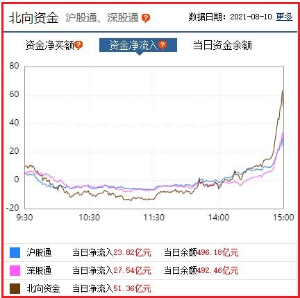 截至收盘: 北向资金净流入51.36亿元,其中沪股通资金净流入23.82亿元,深股通资金净流入27.54亿元。