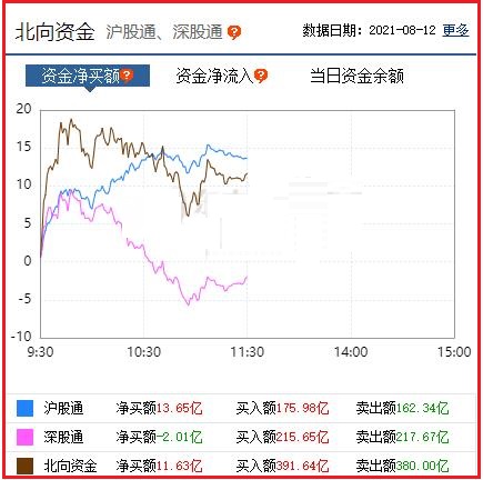 截至午间收盘: 北向资金净流入11.63亿元,其中沪股通资金净流入13.65亿元,深股通资金净流出2.01亿元。