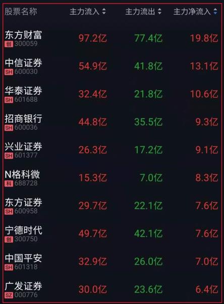 资金净流入十大人气热股: