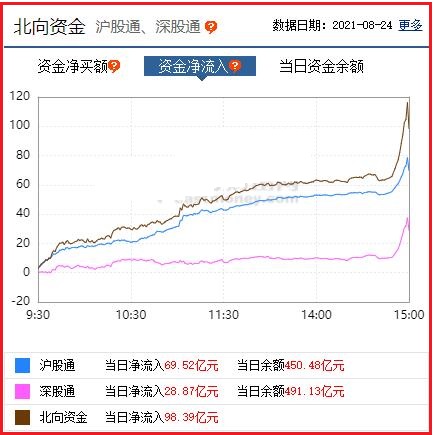 截至收盘: 北向资金净流入98.39亿元,其中沪股通资金净流入69.52亿元,深股通资金净流入28.87亿元。
