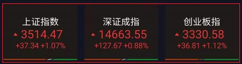 盘面上,石油矿业开采、CRO概念、燃气水务涨幅居前,在线教育、通信设备、国防军工跌幅前列。截至收盘,上证指数涨1.07%,报3514.47点,深证成指涨0.88%,报14663.55点,创业板指涨1.12%,报3330.58点。