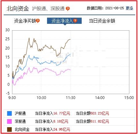 截至午间收盘: 北向资金净流入24.95亿元,其中沪股通资金净流入16.77亿元,深股通资金净流入8.18亿元。