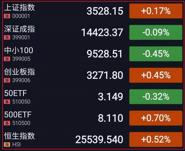 1.A股三大指数集体高开,随后走势分化,创指一度冲高涨1.8%。板块方面,石油开采板块大幅拉升,磷化工、氟化工等化工股持续强势;机场航运、医美板块下挫,家电、猪肉板块低迷。午后指数走弱,三大指数一度集体翻绿。工业母机、煤炭板块拉升走强,盐湖提锂板块持续强势,白酒概念回暖;证券、银行等大金融板块集体回调。总体而言,市场情绪仍在修复,个股跌多涨少,赚钱效应一般。