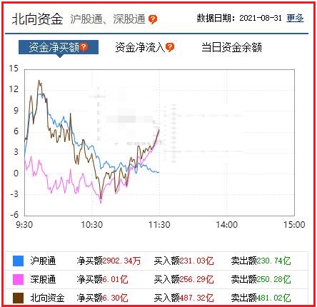 截至午间收盘: 北向资金净流入6.30亿元,其中沪股通资金净流入0.29亿元,深股通资金净流入6.01亿元。