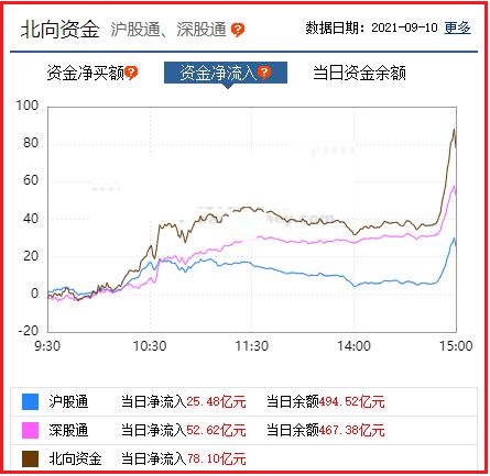 截至收盘: 北向资金净流入78.10亿元,其中沪股通资金净流入25.48亿元,深股通资金净流入52.62亿元。