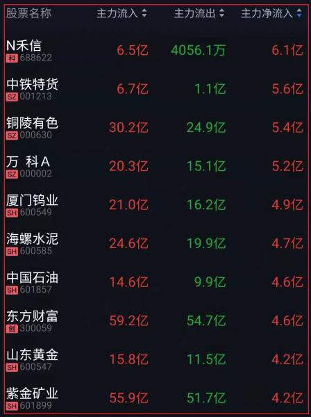 资金净流入十大人气热股: