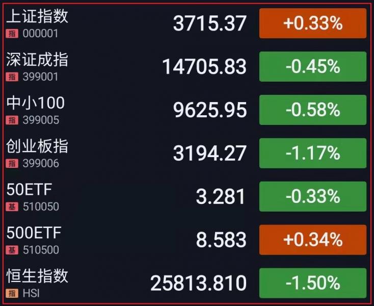 1.A股三大指数开盘涨跌不一,随后走势分化。板块方面,煤炭、有色、化工、石油等周期板块再度走强,环保、航运板块拉升走强;景点旅游、酒店餐饮相关板块下挫,半导体芯片股表现低迷。两市午后延续分化走势,沪指横盘震荡,科创50指数盘中跌近3%。元宇宙概念、游戏股再度大涨,风电、黄金概念股活跃;军工、汽车股走弱,鸿蒙概念、MINILED板块持续低迷。总体而言,市场风格持续切换,个股涨多跌少,赚钱效应一般,沪深两市成交额连续第39个交易日突破1万亿元。截止收盘,沪指涨0.33%,深成指跌0.45%,创业板指跌1.17%;