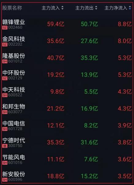 4.北向资金净流入64.26亿元,沪股通和深股通净流入43.72亿元和净流入20.54亿元。前十大成交股中,净买入额居前三的是隆基股份、赣锋锂业、招商银行,分别获北向资金净买入9.34亿元、7.25亿元、4.51亿元。净卖出额居前三的分别是贵州茅台、三一重工、五粮液,净卖出额为8.71亿元、6.00亿元、5.20亿元。
