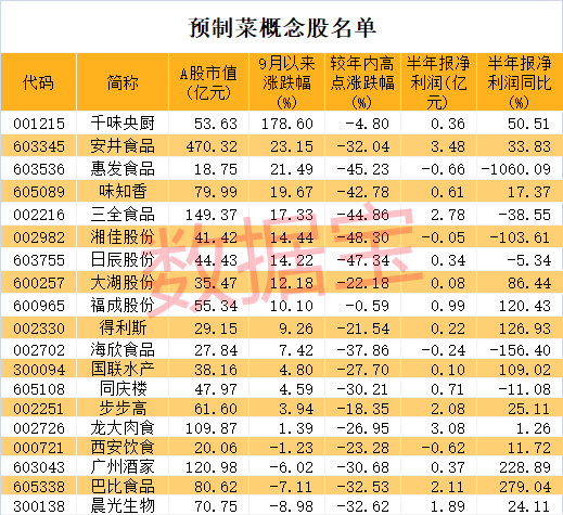 证券时报·数据宝统计显示,A股与预制菜相关的上市公司共19家。得利斯9月30日在互动平台回应投资者称,新产能投产后,将扩大公司肉制品深加工、速冻类产品以及预制菜相关产品产能。