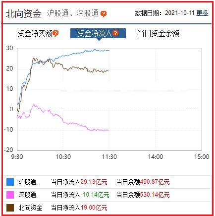 截至午间收盘: 北向资金净流入19.00亿元,其中沪股通资金净流入29.13亿元,深股通资金净流出10.14亿元。