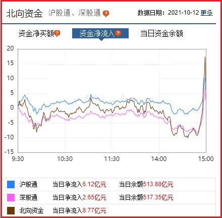 截至收盘: 北向资金净流入8.77亿元,其中沪股通资金净流入6.12亿元,深股通资金净流入2.65亿元。